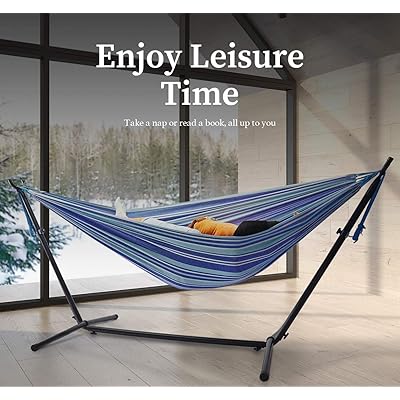( 3.9 ) out of 5 stars 10 ratings , based on 10 reviews current price $79.99 $ 79. Cotton double hammock with stand in denim with 140 reviews. The stand is foldable, which makes it easy to store. The entire set can be put into a case and weighs in at about 30 lbs. What is the price range for hammocks? Sold and shipped by sunnydaze décor. Uniquely lightweight and easy to put together, the eno nomad hammock stand is a great option for car camping or other excursions that require regular assembly.while the bag in which the stand is packed may seem less than ideal for portaging or backpacking, the stand itself is well suited to regular movement due to its extremely low weight. Check out our double hammock stand selection for the very best in unique or custom, handmade pieces from our hammocks & swings shops. Some of the most reviewed products in hammocks are the vivere 9 ft. Sorbus brazilian double hammock with carrying pouch. Great for outside, inside, patios, pool areas, your backyard, camping and even hiking thanks to the convenient carrying bag. Consider the various options and alternative when it comes to hammock and stand combos. The hammock stand is the ideal solution when you do not have evenly spaced trees in your backyard or a solid structure like a pergola or a patio cover.